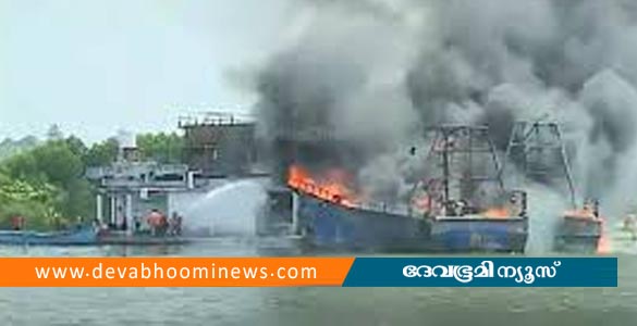 കൊല്ലത്ത് കായലിൽ നങ്കൂരമിട്ടിരുന്ന രണ്ട് മത്സ്യബന്ധന ബോട്ടുകൾക്ക് തീപിടിച്ചു
