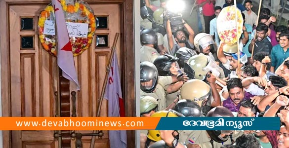 രാഹുലിന്റെ ഓഫീസിലേക്ക് ഡിവൈഎഫ്ഐ പ്രതിഷേധം; വാതിലിന് മുന്നിൽ റീത്ത് വെച്ചു