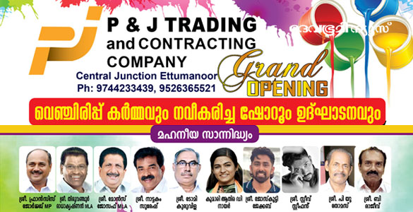 ഏറ്റുമാനൂരില് ഹാർഡ്വെയര് വിപണനരംഗത്ത് 1967ൽ വെട്ടൂര് പെയിന്റ്സ് എന്ന പേരില് ആരംഭിച്ച സ്ഥാപനമാണ് പാരമ്പര്യം കാത്തുസൂക്ഷിച്ചുകൊണ്ട് പി & ജെ ട്രേഡിംഗ് ആൻഡ് കോൺട്രാക്റ്റിംഗ് എന്ന പേരില് പുതുക്കിയ ഊർജവും വിശാലമായ സേവനങ്ങളുമായി രംഗപ്രവേശം ചെയ്തിരിക്കുന്നതെന്ന് സ്ഥാപനമുടമ ഫിലിപ്പ് ജോസഫ് പറയുന്നു. ഉൽപന്നങ്ങൾ വിൽക്കാൻ മാത്രമല്ല, ഉപഭോക്താക്കളെ ശരിയായ ദിശയില് നയിക്കാനും അവരുടെ പ്രോജക്റ്റുകളെ പിന്തുണയ്ക്കാനും, കൃത്യസമയത്തെ ഇടപെടലുകളിലൂടെ നിര്മാണരംഗത്തെ പ്രശ്നങ്ങള്ക്ക് പരിഹാരം ലഭിക്കുന്നുണ്ടെന്ന് ഉറപ്പാക്കാനും തങ്ങള് കൂടെയുണ്ടാവുമെന്ന് പി ആന്റ് ജെയുടെ സാരഥികകളായ ഫിലിപ്പും പത്നി സിജി ഫിലിപ്പും പറയുന്നു. സ്ഥാപനത്തിന്റെ പുതിയ ശാഖ കുറുമുള്ളൂരിലും പ്രവര്ത്തനമാരംഭിച്ചിട്ടുണ്ട്.